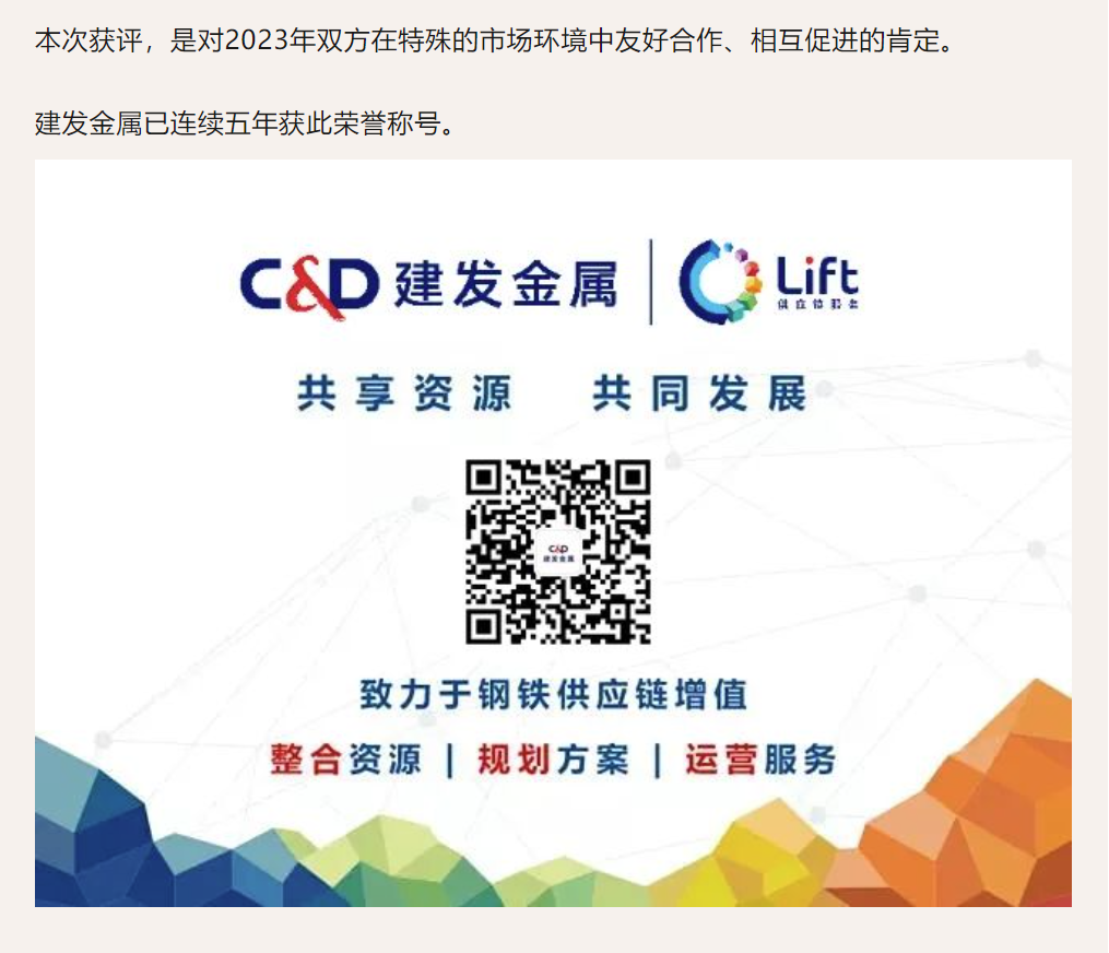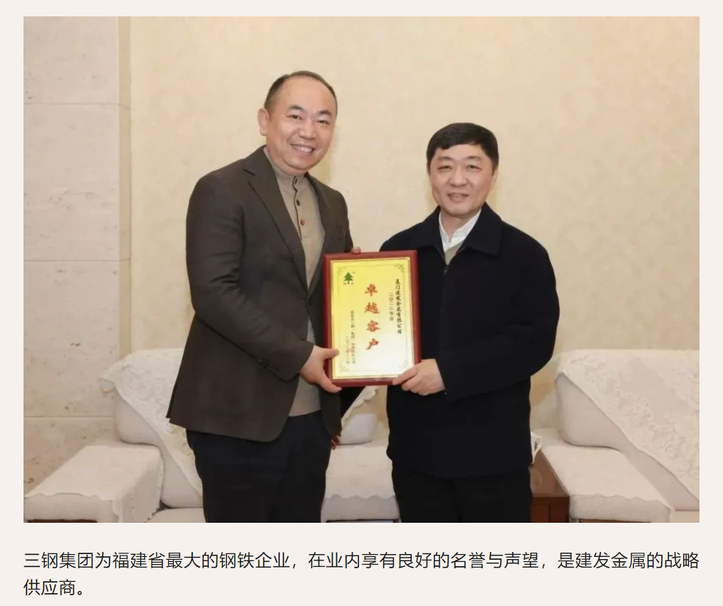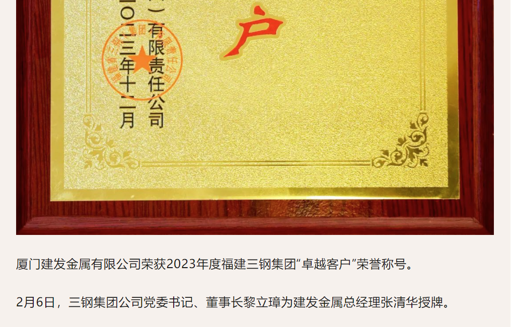 建發(fā)金屬獲評2023年度三鋼集團“卓越客戶(hù)”榮譽(yù)稱(chēng)號